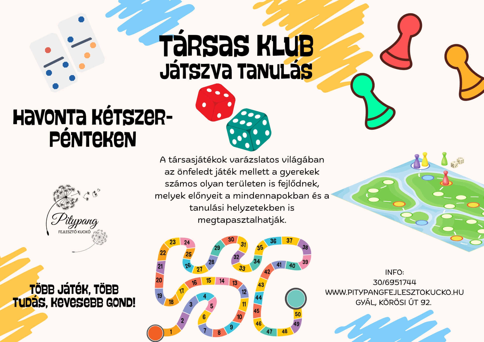 A társasjátékok varázslatos világában az önfeledt játék mellett a gyerekek számos olyan területen is fejlődnek, melyek előnyeit a mindennapokban és a tanulási helyzetekben is megtapasztalhatják.